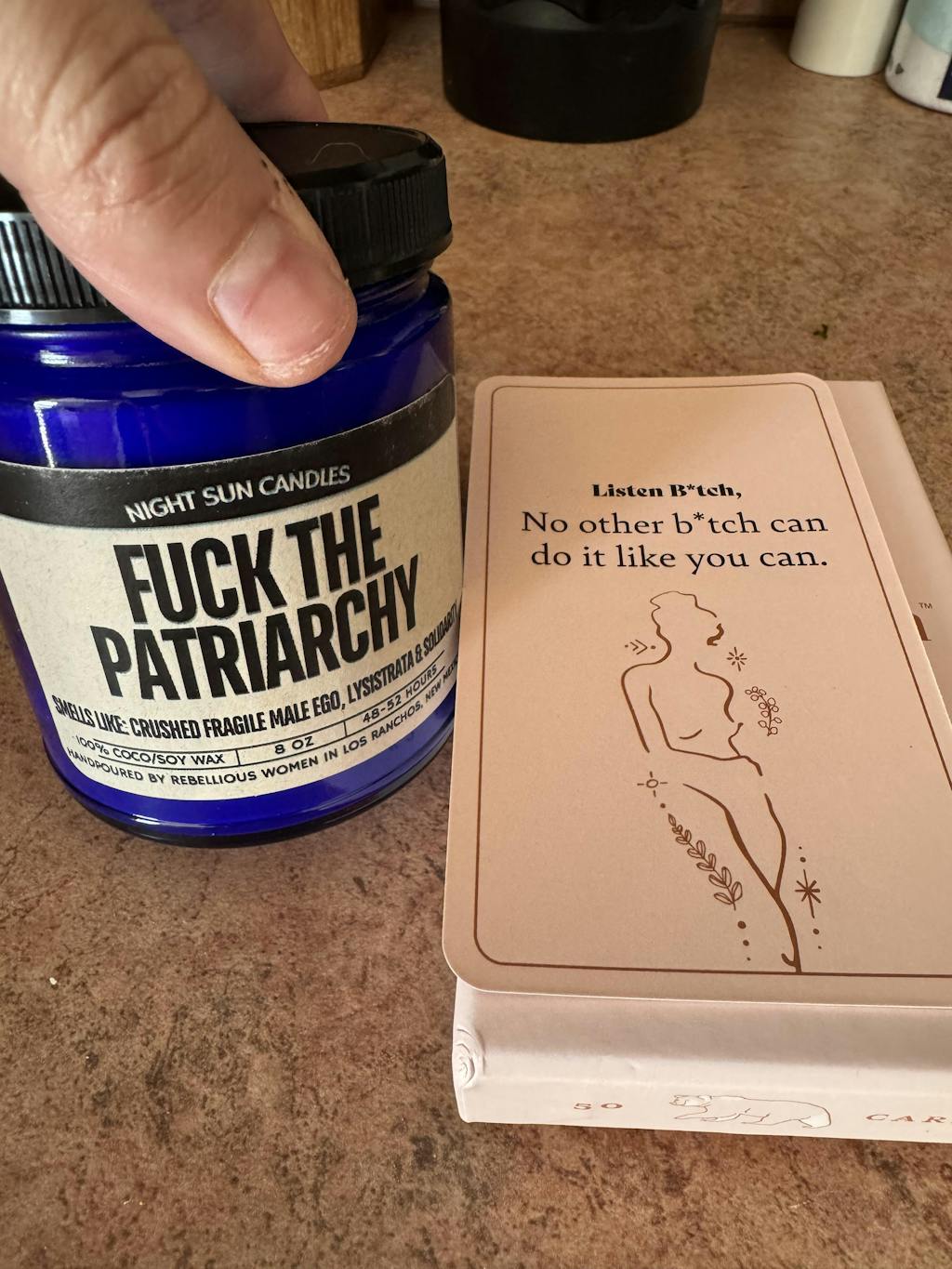 - Nunca, NUNCA, NUNCA queremos que nadie compre una de nuestras velas y luego descubra que lo que huele bien en el frasco no huele a nada cuando lo queman en casa. Una vez que tenemos una mezcla de fragancias, nos llevamos nuestra vela más pequeña (la lata de 2 oz) a casa y la quemamos en la cocina de abajo. Si no podemos olerla arriba en media hora, volvemos a la mesa de diseño.